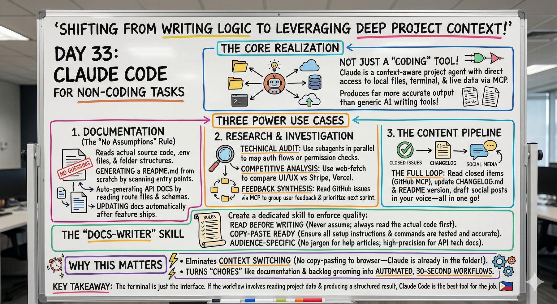Day 33 (Bonus): Claude Code for Non-Coding Tasks - Docs, Research, and Content